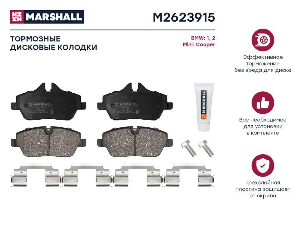 M2623915 MARSHALL Торм. колодки дисковые передн. BMW 1 E81 E87 04- 2 F45 14- Mini Cooper 06- M262