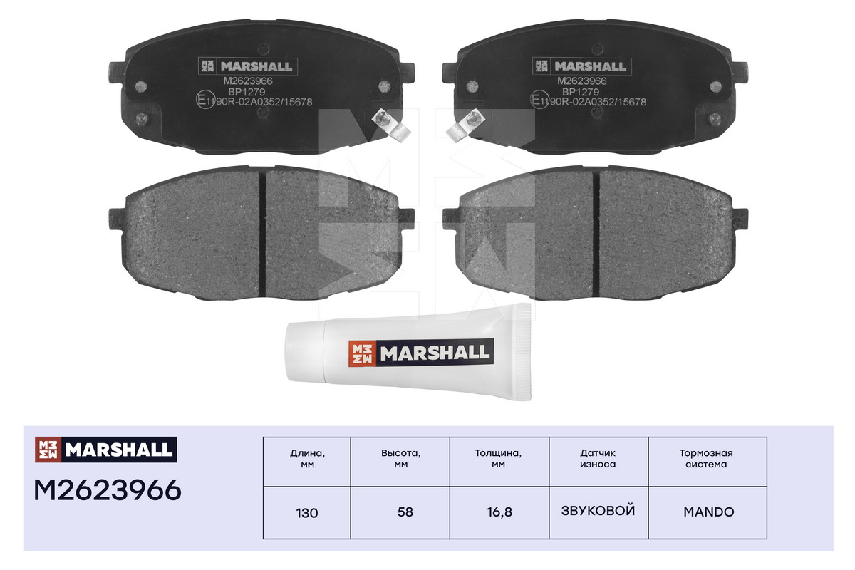 M2623966 MARSHALL Торм. колодки дисковые передн. Hyundai i30 I 07- Kia Carens I 02- Cee'd I 06-