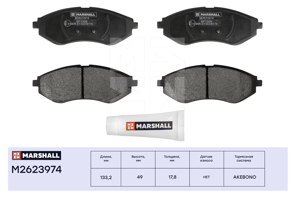 M2623974 MARSHALL Торм. колодки дисковые передн. Chevrolet Aveo I 02- Daewoo Kalos 02- ZAZ Vida 12
