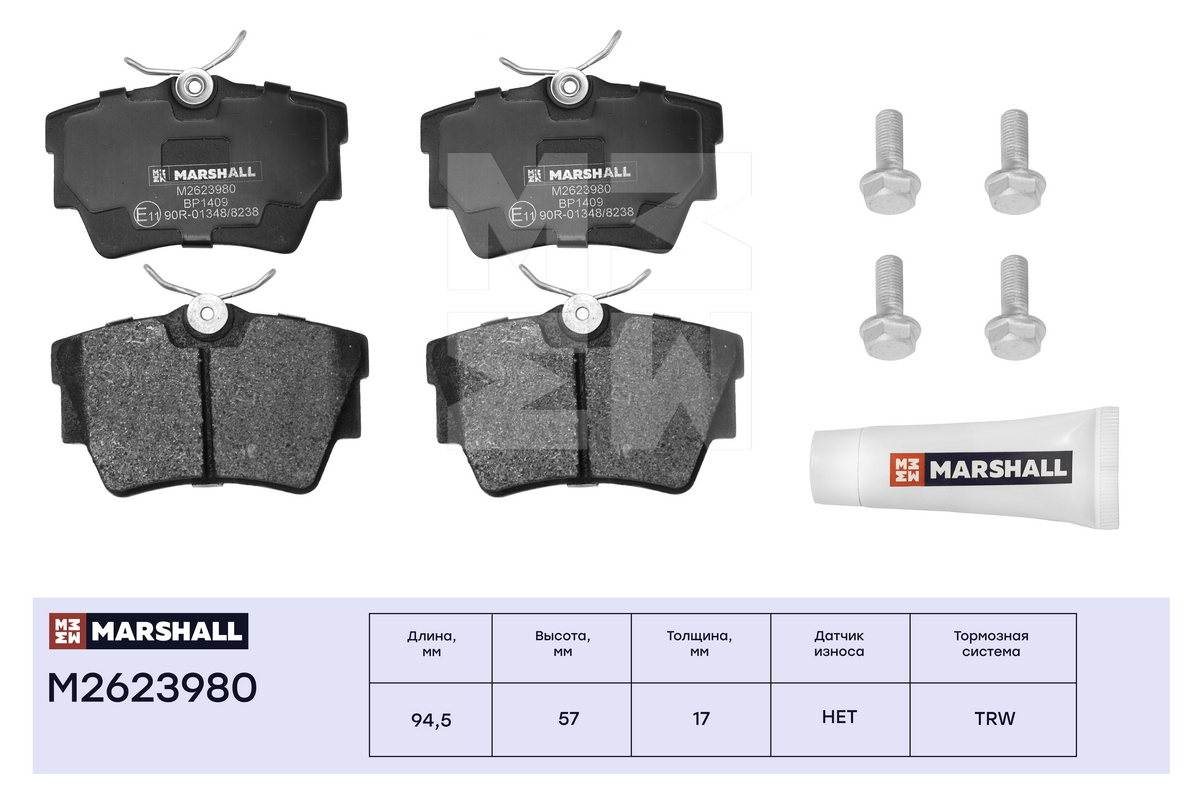 M2623980 MARSHALL Торм. колодки дисковые задн. Nissan Primastar 01- Opel Vivaro A B 01- Renault Tr