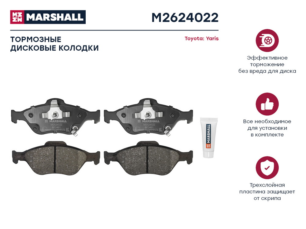 M2624022 MARSHALL Торм. колодки дисковые передн. Toyota Yaris II III 05- M2624022