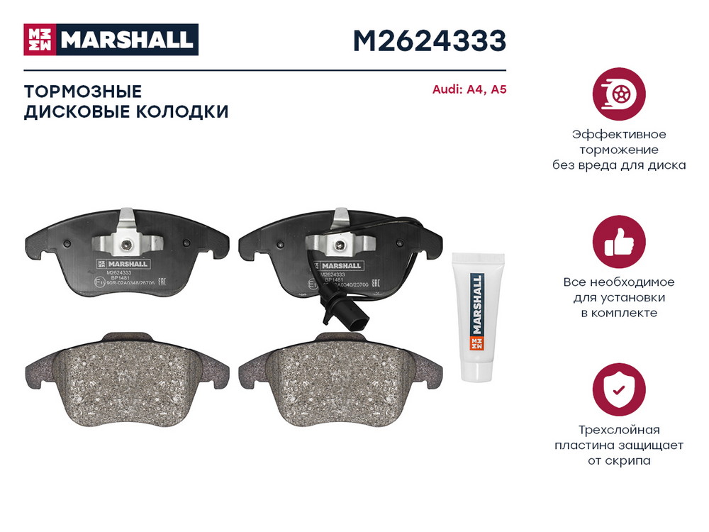 M2624333 MARSHALL Торм. колодки дисковые передн. Audi A4 B8 07- A5 8T 07- M2624333