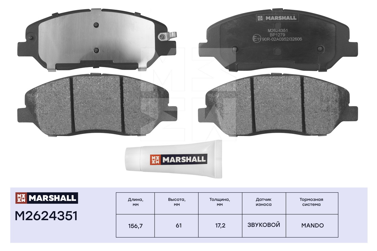 M2624351 MARSHALL Торм. колодки дисковые передн. Hyundai Santa Fe I-III 04- Kia Sorento II 09- Ssa