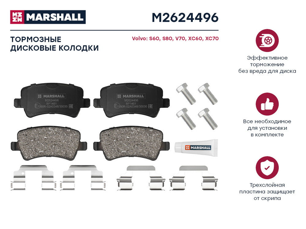 M2624496 MARSHALL Торм. колодки дисковые задн. Volvo S60 II 10- S80 II 06- V70 III 07- XC60 I 0