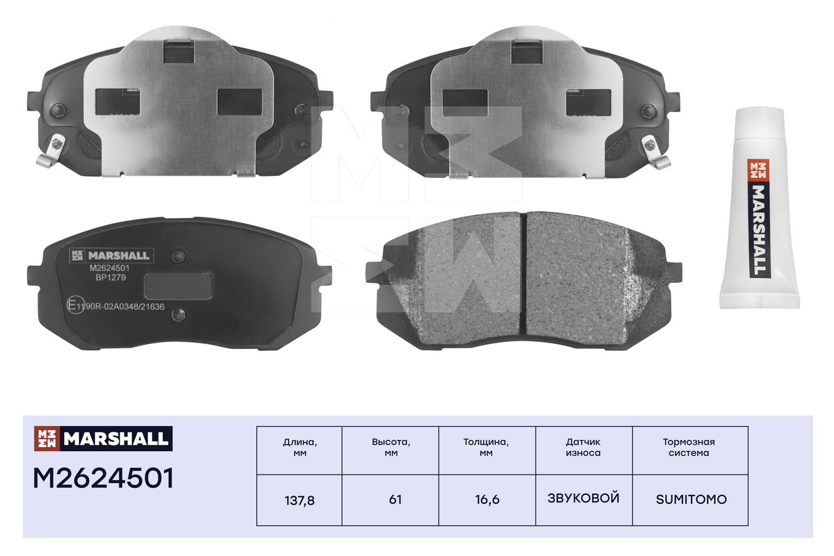 M2624501 MARSHALL Торм. колодки дисковые передн. Hyundai ix35 10- Kia Carens I II 02- Sportage II