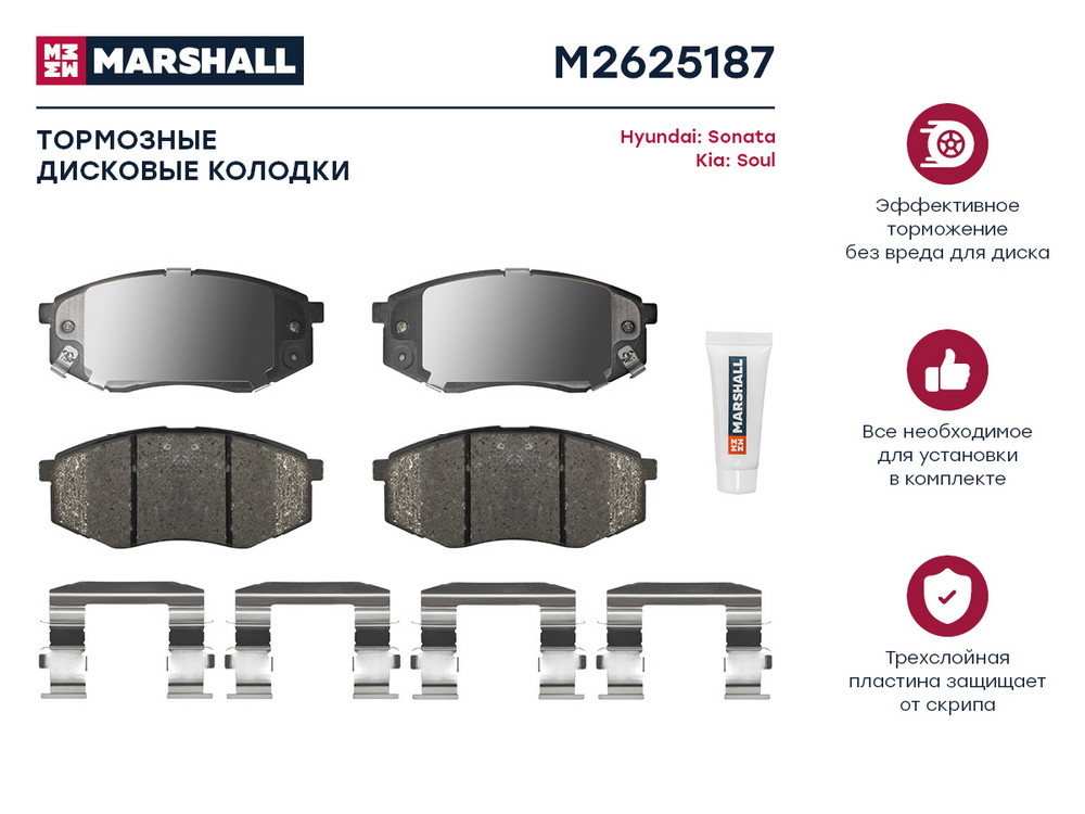 M2625187 MARSHALL Торм. колодки дисковые передн. Hyundai Sonata VI VII 09- Kia Soul II 14- M262518