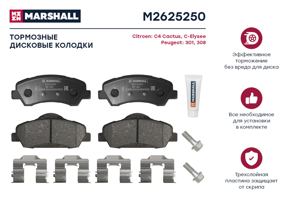 M2625250 MARSHALL Торм. колодки дисковые передн. Citroen C4 Cactus 14- C-Elysee 12- Peugeot 301 1