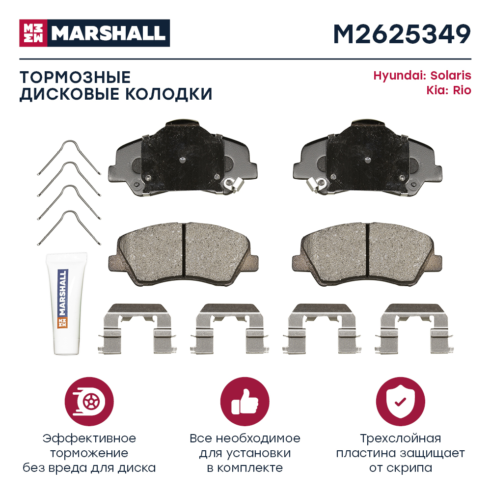 M2625349 MARSHALL Торм. колодки дисковые передн. Hyundai Solaris II 17- Kia Rio IV 17- !с отв. под