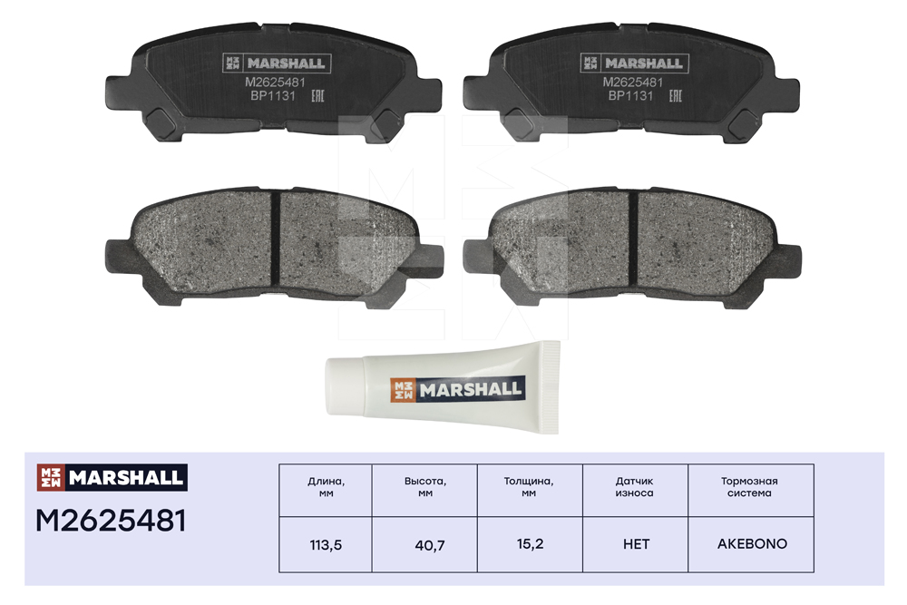 M2625481 MARSHALL Торм. колодки дисковые задн. Toyota Highlander II 07- M2625481