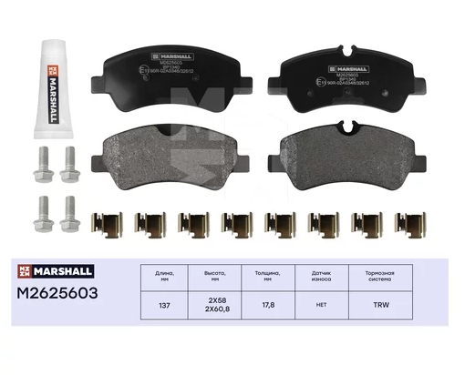 M2625603 MARSHALL Торм. колодки дисковые задн. Ford Transit VIII 13- Tourneo Custom 12- Transit