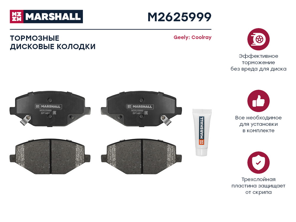 M2625999 MARSHALL Торм. колодки дисковые передн. Geely Coolray 18- M2625999