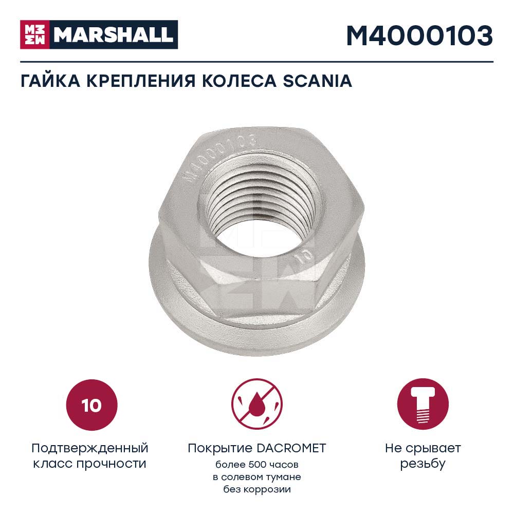 M4000103 MARSHALL гайка! колесная с юбкой с правой резьбой 7/8' H=30.8 SW33 SCANIA