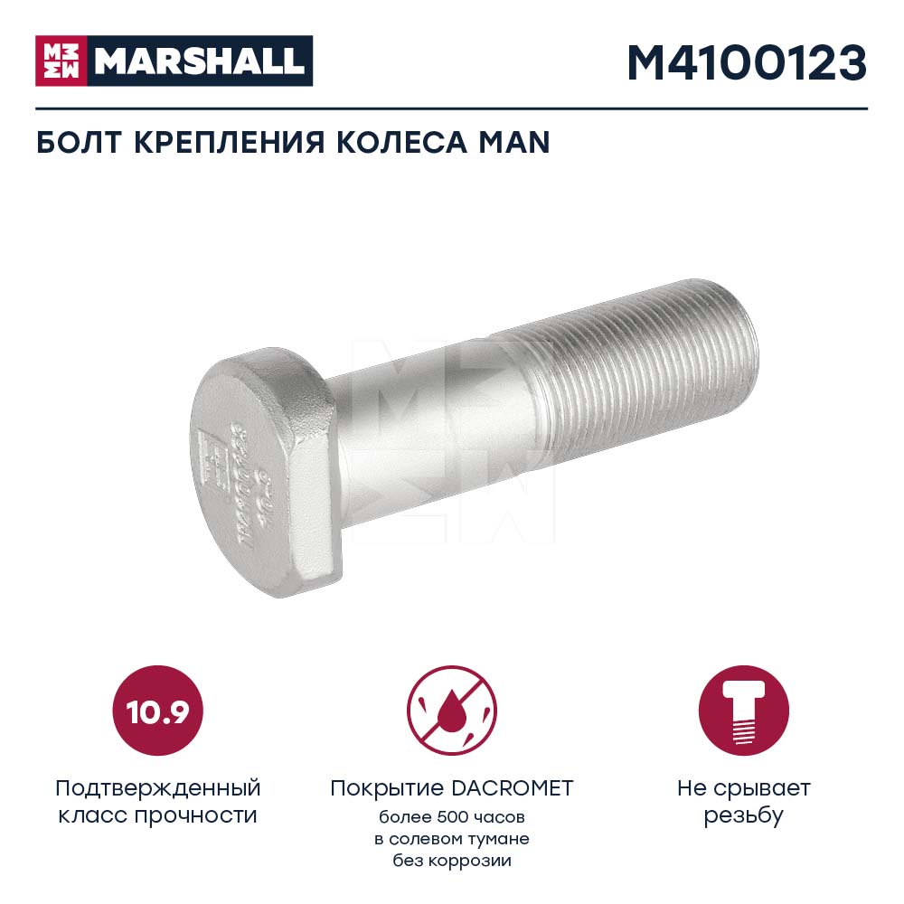 M4100123 MARSHALL Шпилька колесная MB MK/SK, MAN F90 передняя