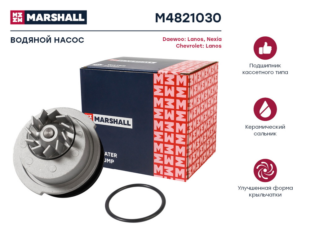 M4821030 MARSHALL Помпа водяная Daewoo Lanos 97- Nexia 94- Chevrolet Lanos 97- M4821030