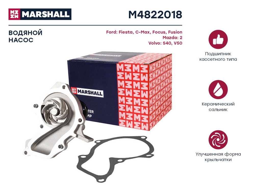 M4822018 MARSHALL Помпа водяная Ford C-Max I 03- Focus I II 98- Mazda 2 I 05- Volvo S40 II 04- V