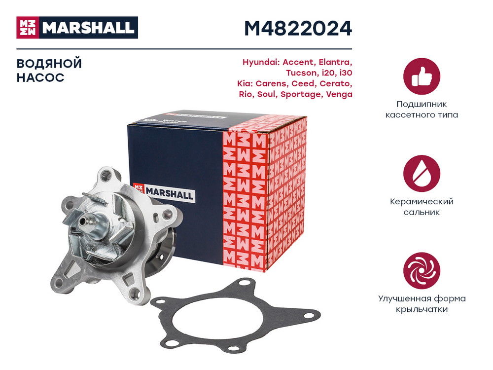 M4822024 MARSHALL Помпа водяная Hyundai Accent V 18- Elantra IV VII 06- Kia Ceed I-III 06- Rio I