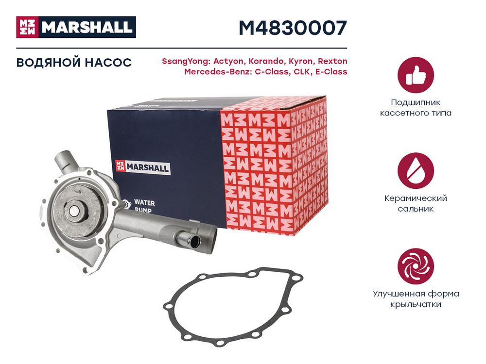 M4830007 MARSHALL Помпа водяная SsangYong Actyon I II 05- MB E-Class W210 W211 95- M4830007