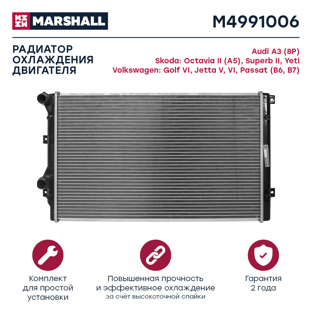 M4991006 MARSHALL Радиатор охл. двигателя Skoda Octavia II A5 04- Yeti 09- VW Golf VI 08- Passat