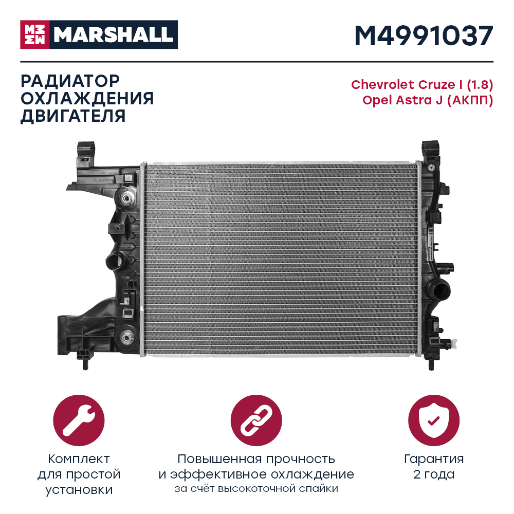 M4991037 MARSHALL Радиатор охл. двигателя Chevrolet Cruze I 1.8 09- Opel Astra J 09- АКПП M4991037