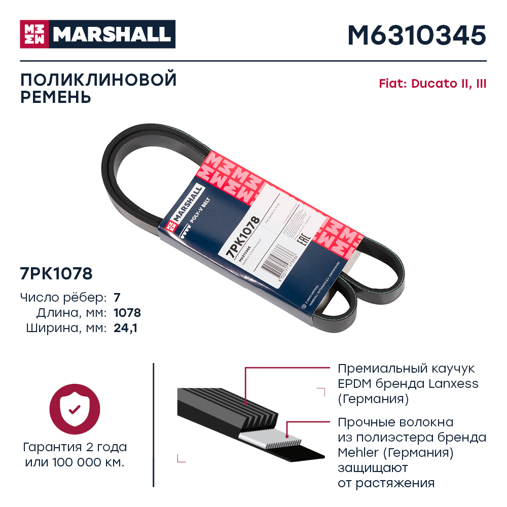 M6310345 MARSHALL Ремень поликлиновой 7PK1078 Fiat Ducato II III 02- M6310345