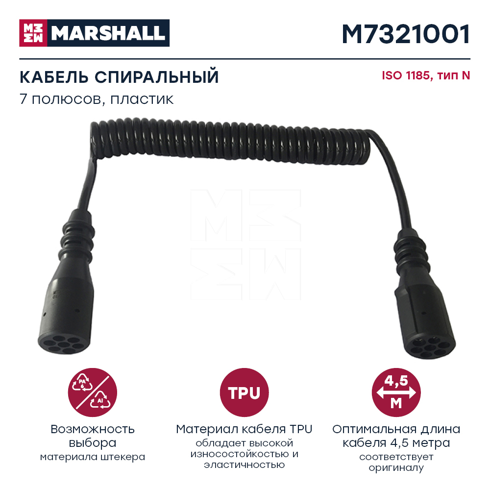 M7321001 MARSHALL Кабель электрический полуприцепа N-type 7-полюсный L=3500мм основной пластиковые