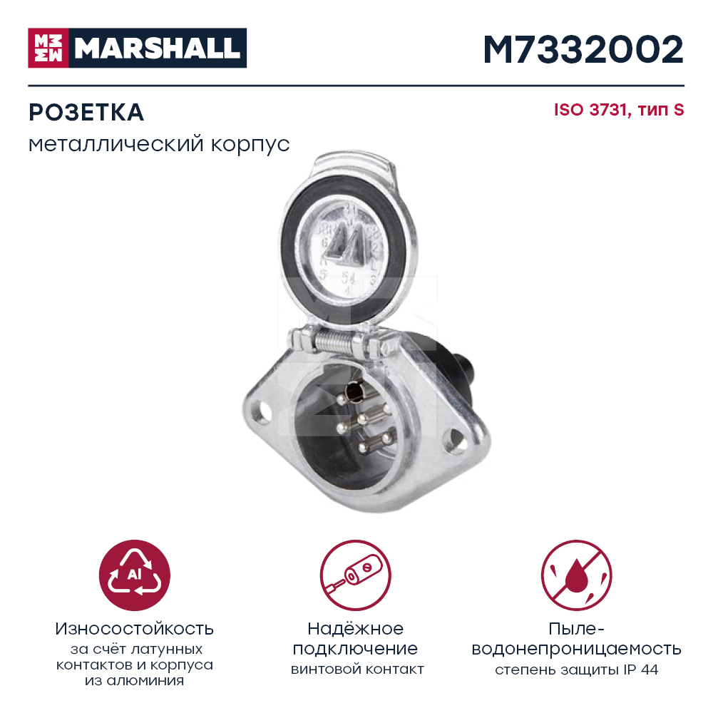 M7332002 MARSHALL Разъем электрический прицепа ISO 3731 Type S 7-полюсный (розетка металл) винт. с