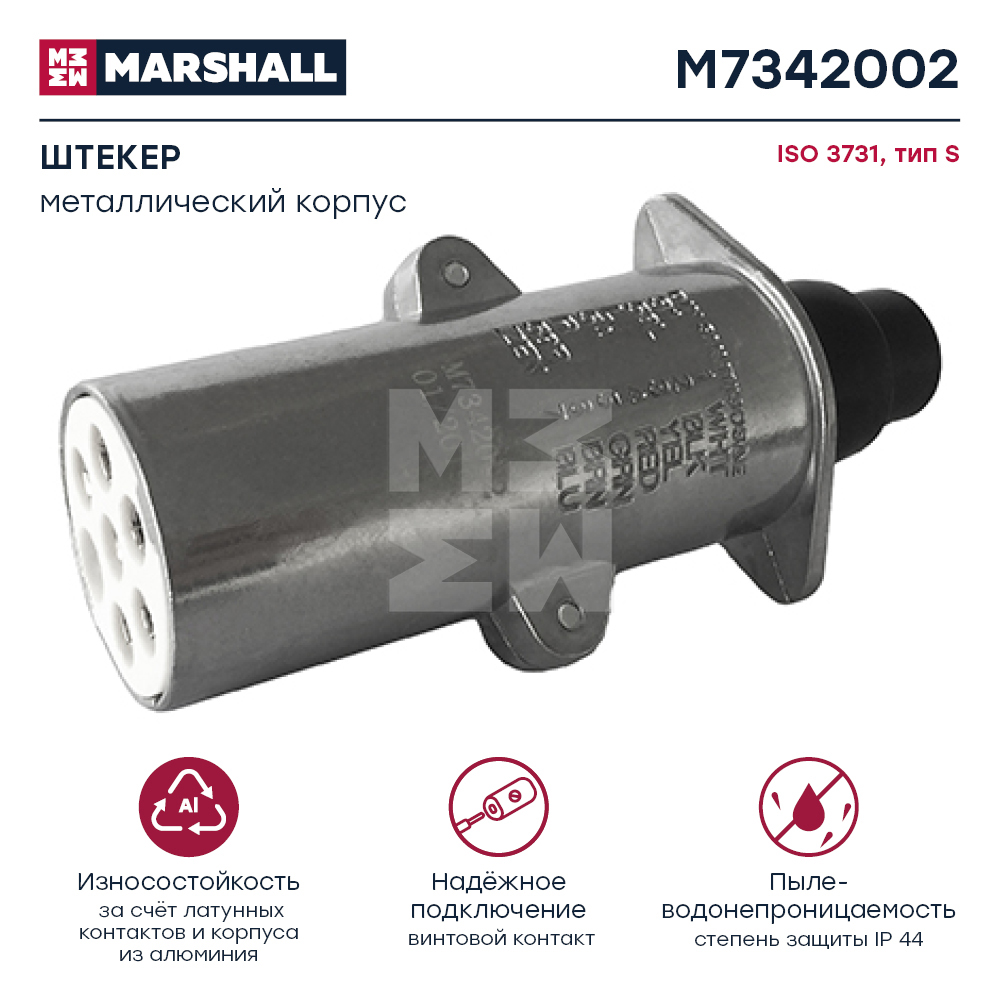 M7342002 MARSHALL Разъем электрический прицепа ISO 3731 Type S 7-полюсный (вилка металл) MARSHALL