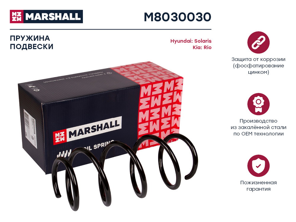 M8030030 MARSHALL Пружина подвески передн. Hyundai Solaris 10- Kia Rio 11- АКПП M8030030