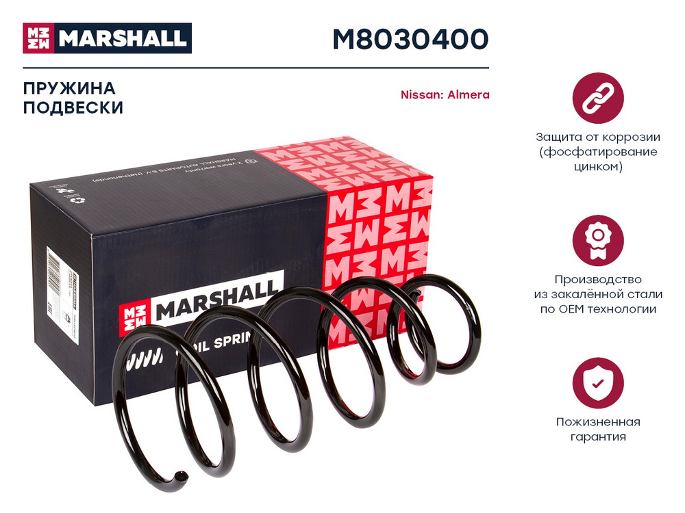M8030400 MARSHALL Пружина подвески передн. Nissan Almera 00- 1.5 M8030400
