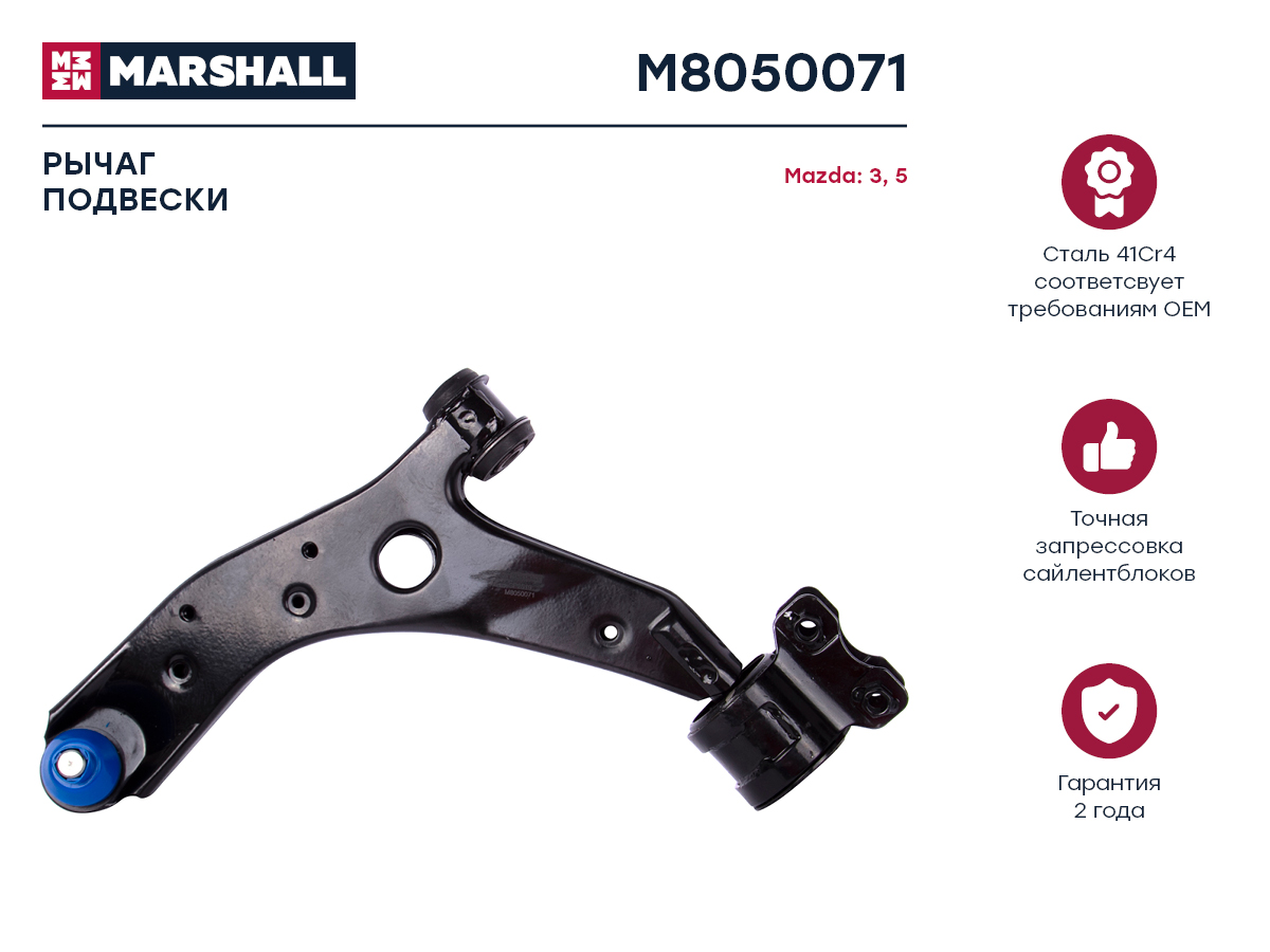 M8050071 MARSHALL Рычаг подвески передн. лев. Mazda 3 03-5 05- M8050071