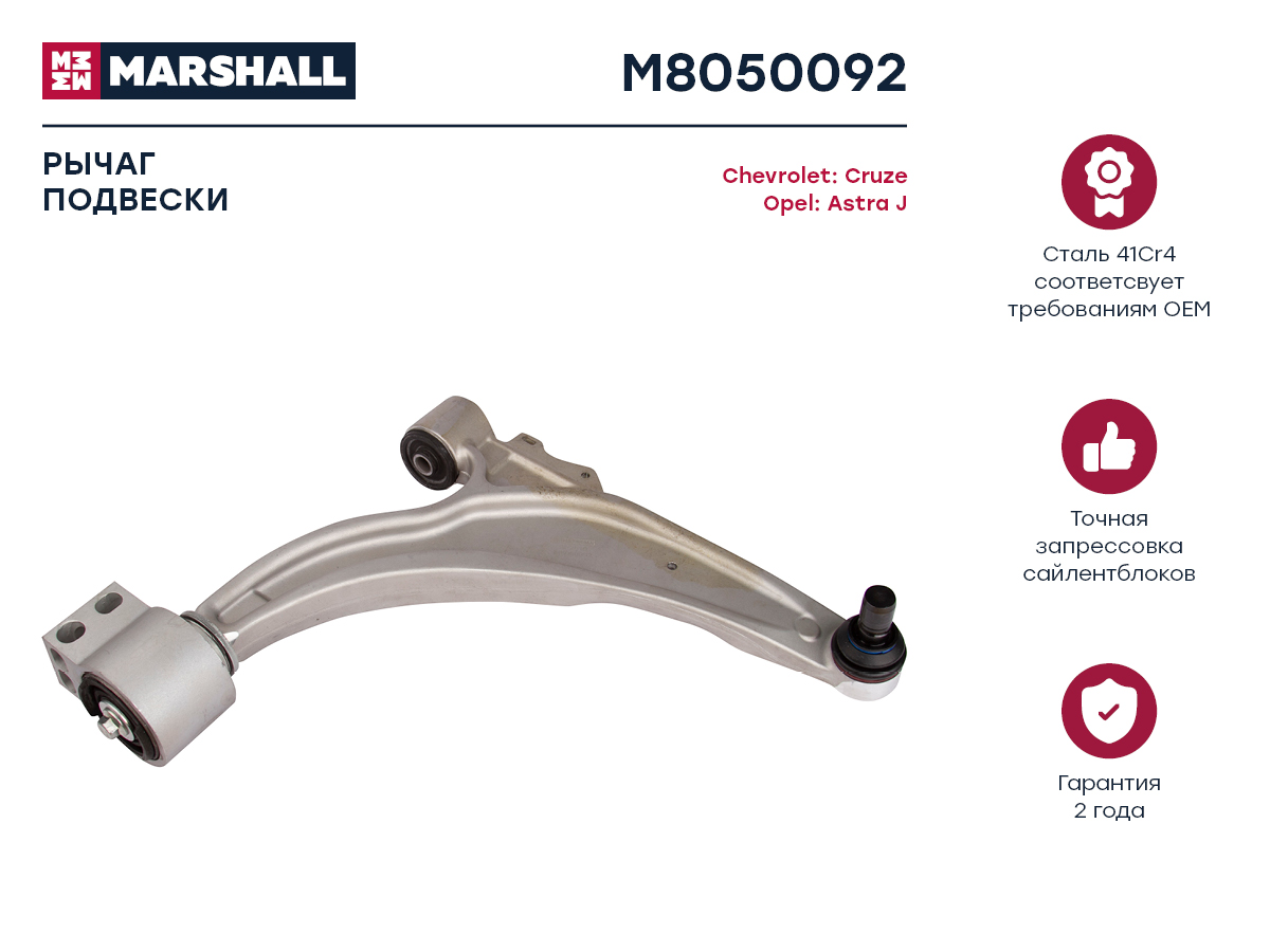 M8050092 MARSHALL Рычаг подвески передн. прав. Chevrolet Cruze 09-Opel Astra J 09- M8050092