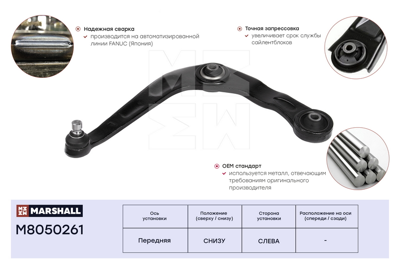 M8050261 MARSHALL Рычаг подвески передн. лев. Peugeot 206 98- M8050261
