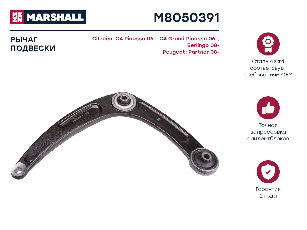 M8050391 MARSHALL Рычаг подвески передн. лев. Peugeot 307 Citroen C4 Berlingo M8050391