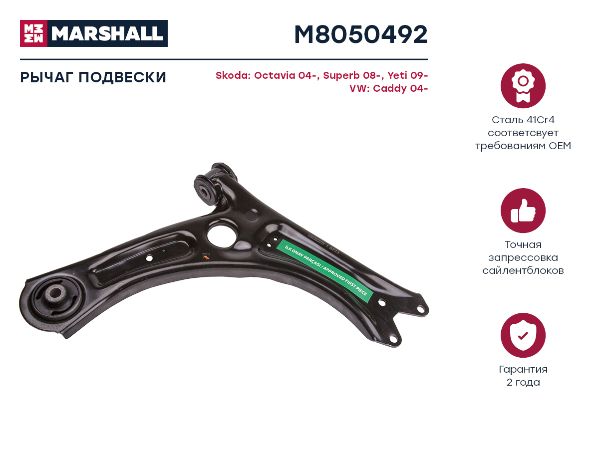 M8050492 MARSHALL рычаг передн. прав.!\ Skoda Octavia II 04>