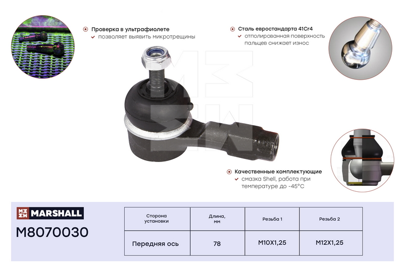 M8070030 MARSHALL Наконечник рулевой лев.прав. Mitsubishi Carisma 95- Colt 88- Lancer 88- Pajero 9