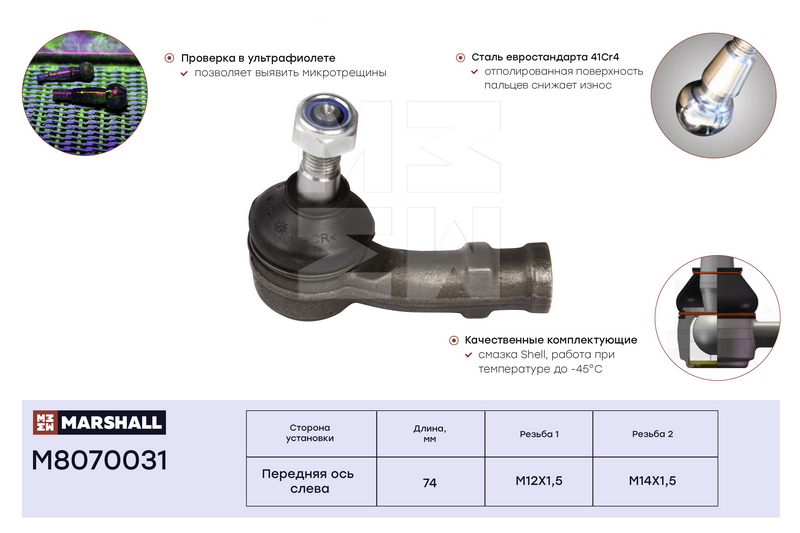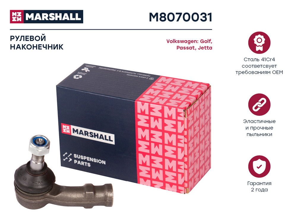M8070031 MARSHALL Наконечник рулевой лев. VW Golf 83-Jetta 84-Passat 88- Chery Amulet A15 06- M80