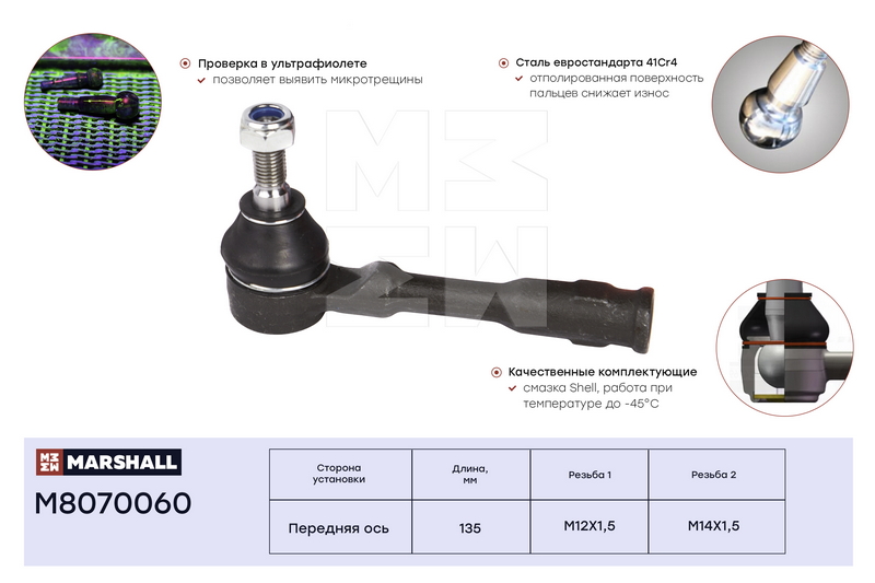 M8070060 MARSHALL Наконечник рулевой лев.прав. Opel Astra G 98- Zafira A 99- M8070060