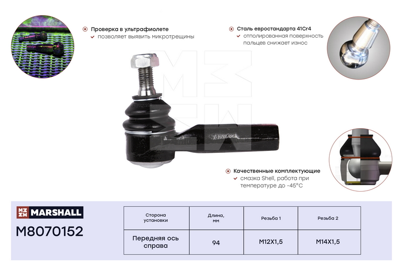 M8070152 MARSHALL Наконечник рулевой прав. Skoda Fabia 99-VW Polo 01- M8070152