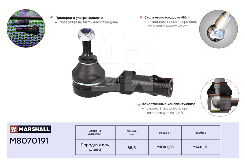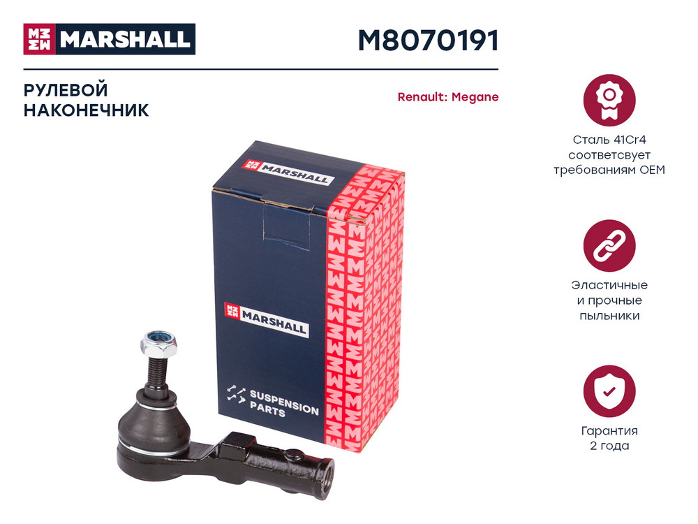 M8070191 MARSHALL Наконечник рулевой лев. Nissan Micra 03- Renault Clio 98- Kangoo 97- Megane 96-