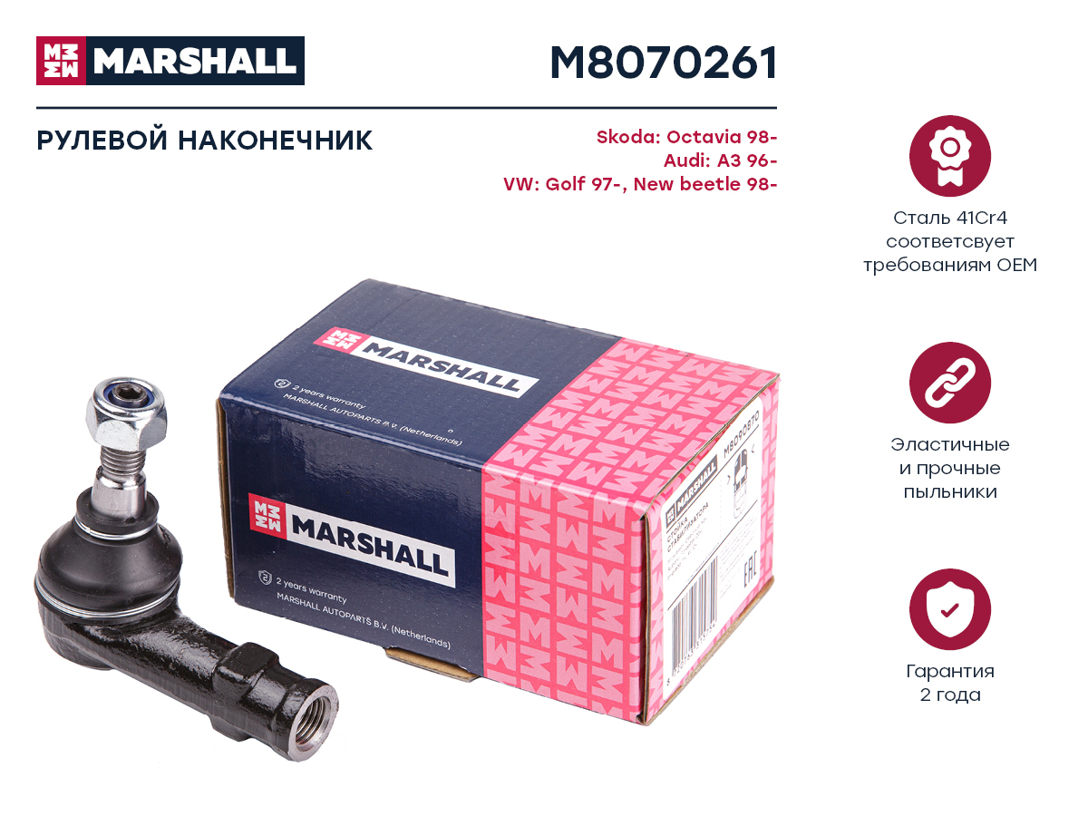 M8070261 MARSHALL Наконечник рулевой передн. лев. VAG A3/GOLF/OCTAVIA (M8070261)