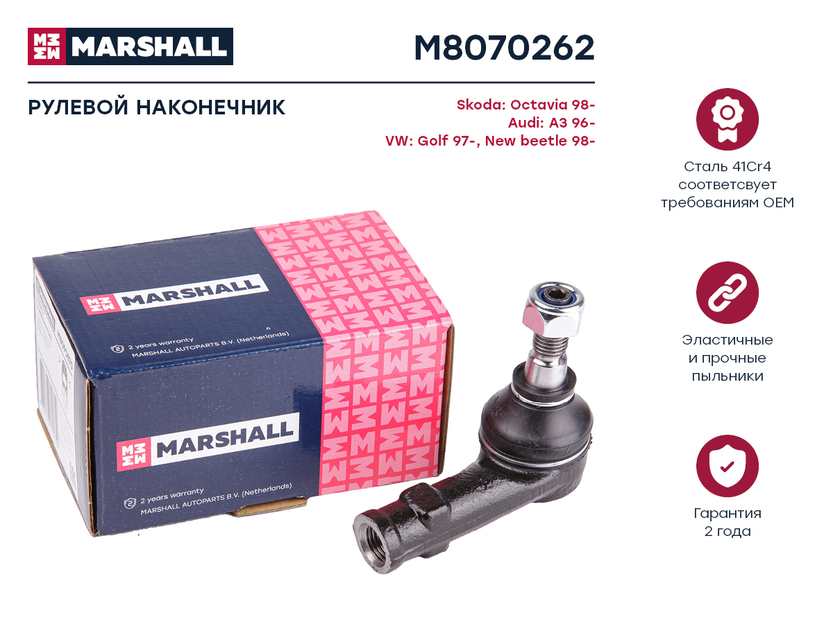 M8070262 MARSHALL Наконечник рулевой передн. прав. VAG A3/GOLF/OCTAVIA (M8070262)