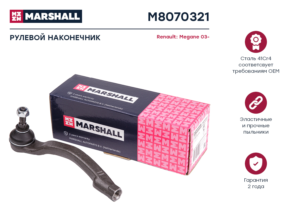 M8070321 MARSHALL наконечник рулевой тяги лев.! Renaulr Megane II 03>
