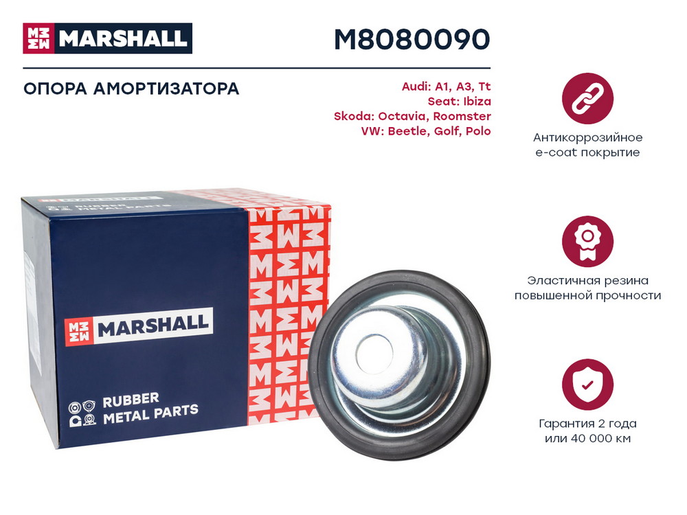 M8080090 MARSHALL Опора амортизатора VAG: A3 96- Tt 99- Ibiza 06- Octavia 96- Roomster 06- Golf 98
