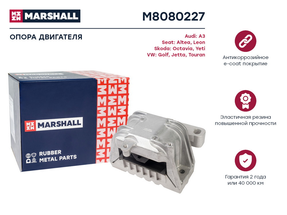 M8080227 MARSHALL Опора двигателя VAG: A3 10- Altea 10- Leon 10- Octavia 10- Yeti 09- Golf 08- Jet