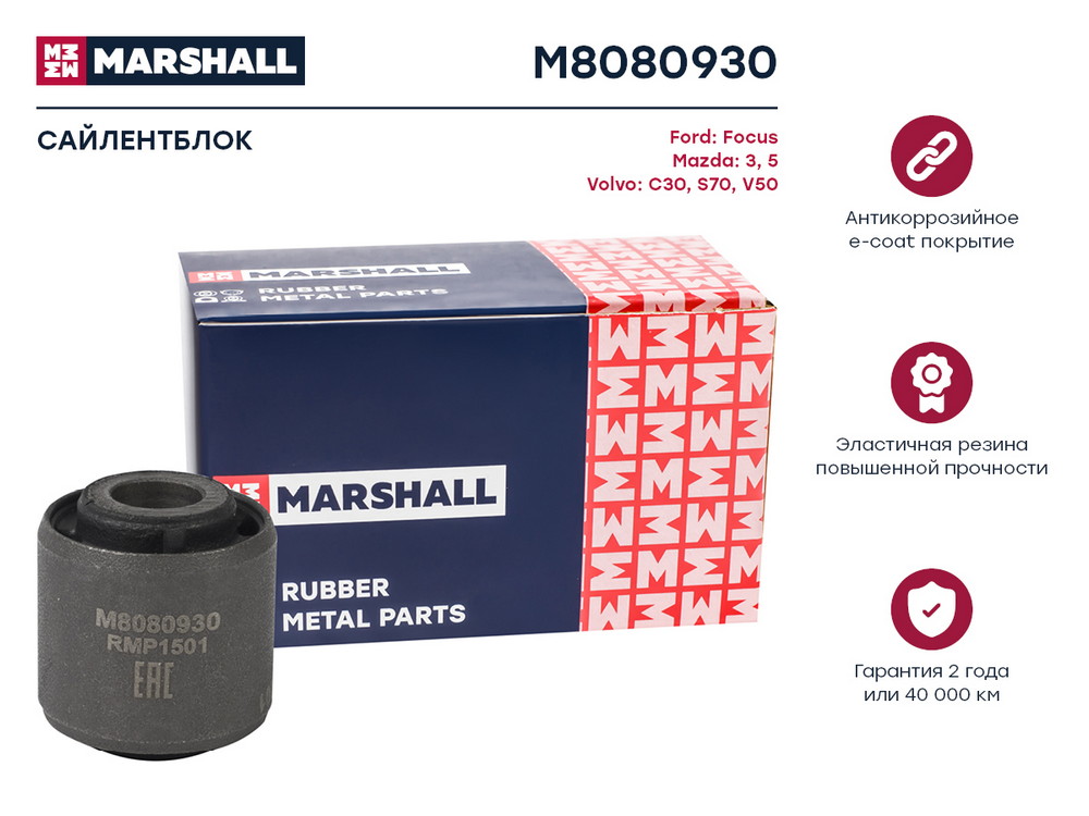 M8080930 MARSHALL Сайлентблок Ford: Focus 98- Mazda: 3 03- 5 05- Volvo: C30 06- S70 96- V50 04- M8