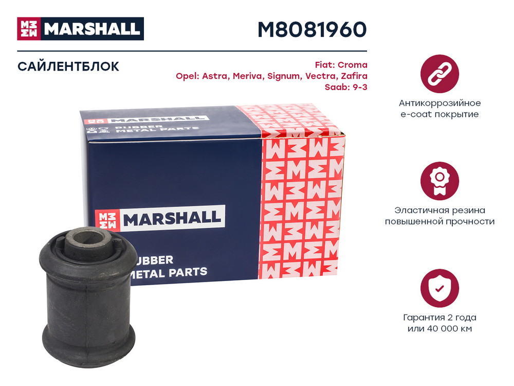 M8081960 MARSHALL Сайлентблок Opel: Astra 98- Meriva 10- Vectra 96- Zafira 05- Saab: 9-3 02- M8081