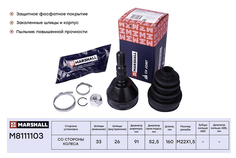 M8111103 MARSHALL ШРУС внеш. (без ABS) Opel Astra H 04- / Zafira B 05- (M8111103)