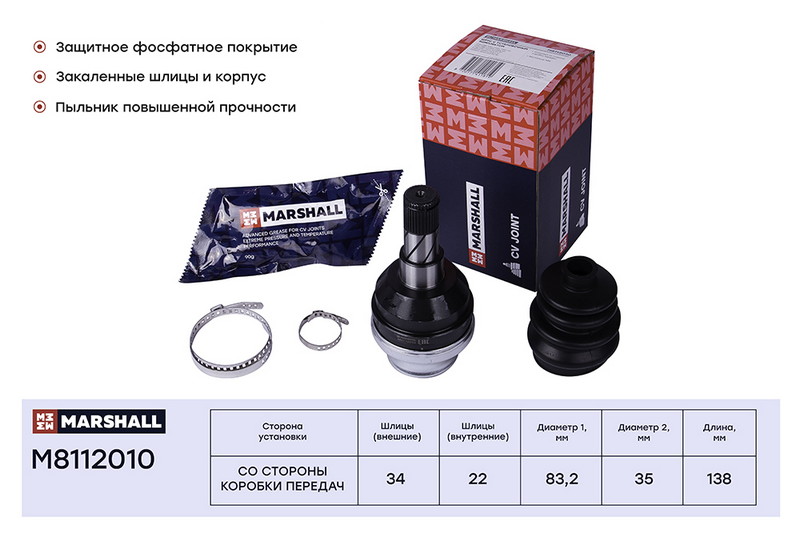 M8112010 MARSHALL ШРУС внутр. Chevrolet Lanos 02- Daewoo Nexia 94- Opel Ascona C 81- Kadett E 84-