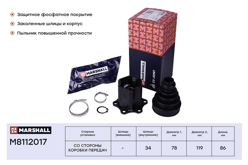 M8112017 MARSHALL ШРУС внутр. Audi A3 8P 8V 03- Skoda Octavia II A5 III A7 04- VW Jetta V 05- Tig