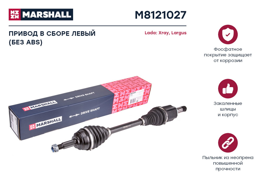 M8121027 MARSHALL Привод в сборе левый без ABS Lada Xray 15- Largus 12- M8121027